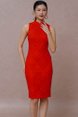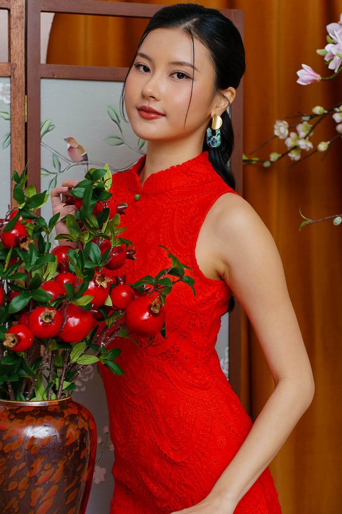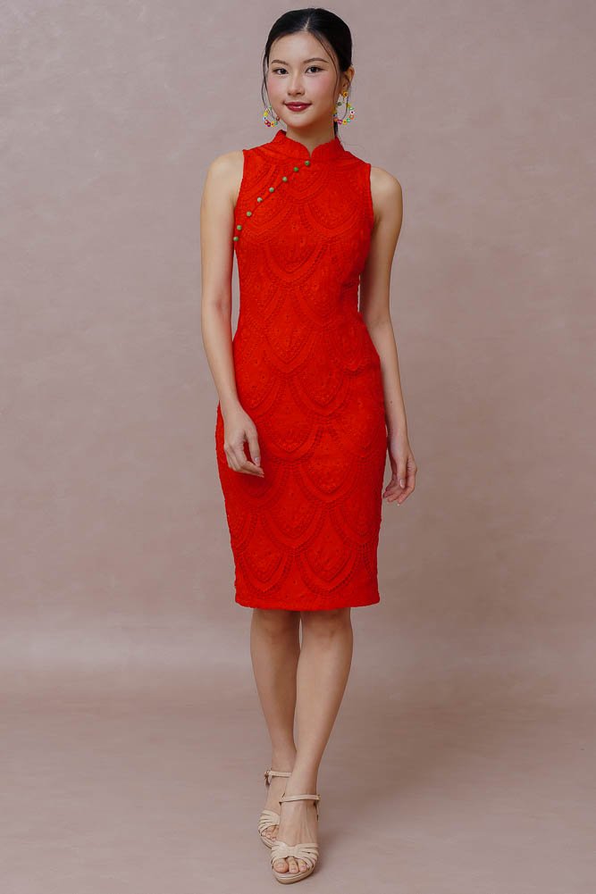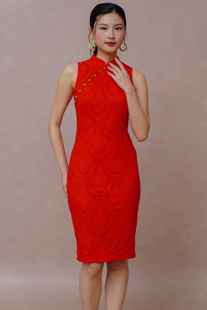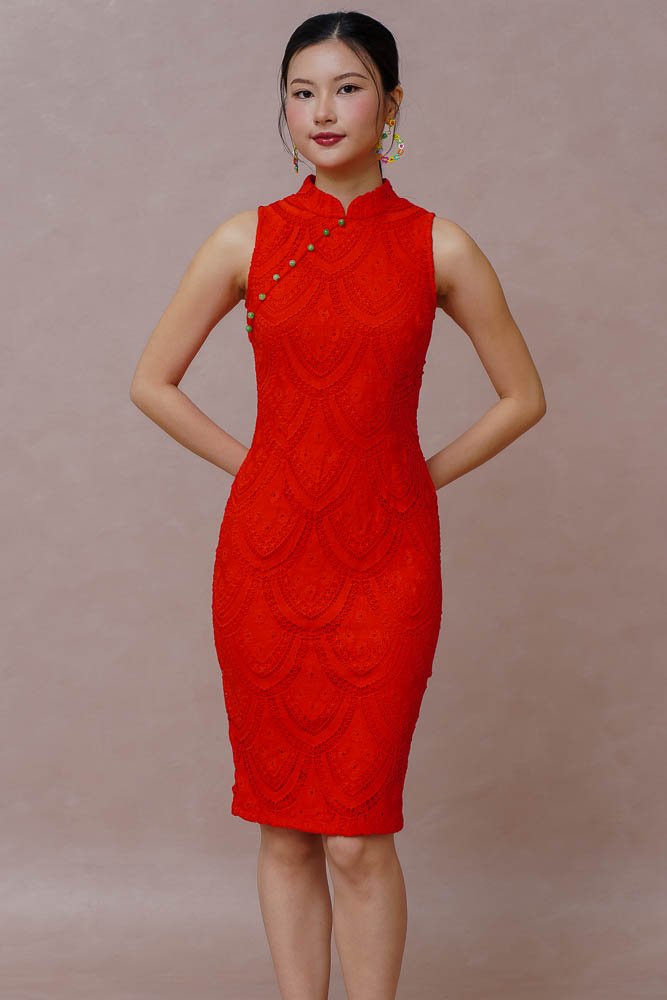 MOON DEW CROCHET CHEONGSAM DRESS (TANGERINE)
