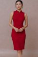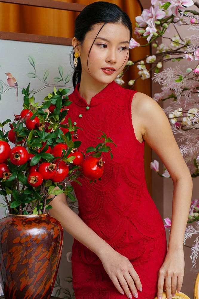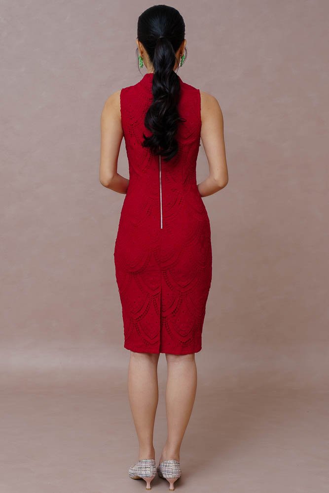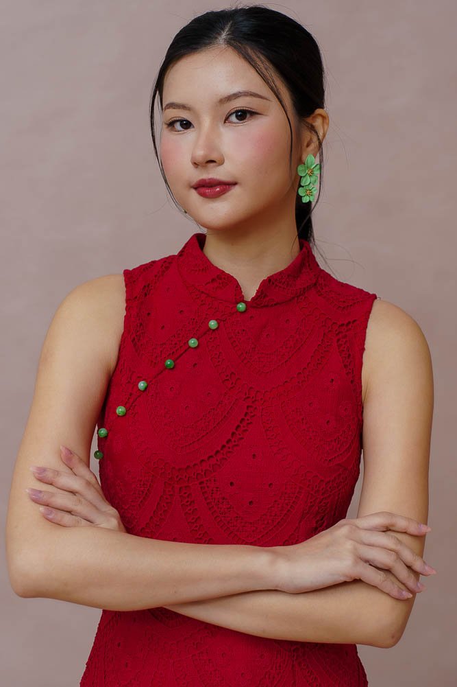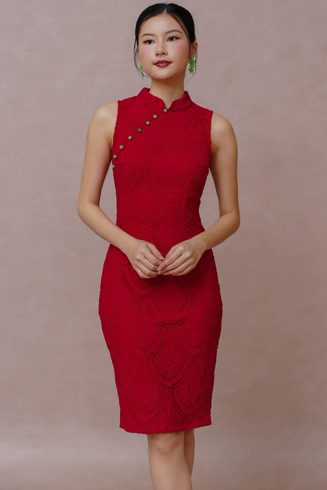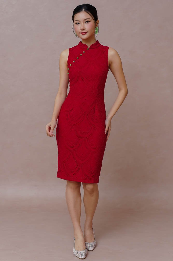 MOON DEW CROCHET CHEONGSAM DRESS (WINE)