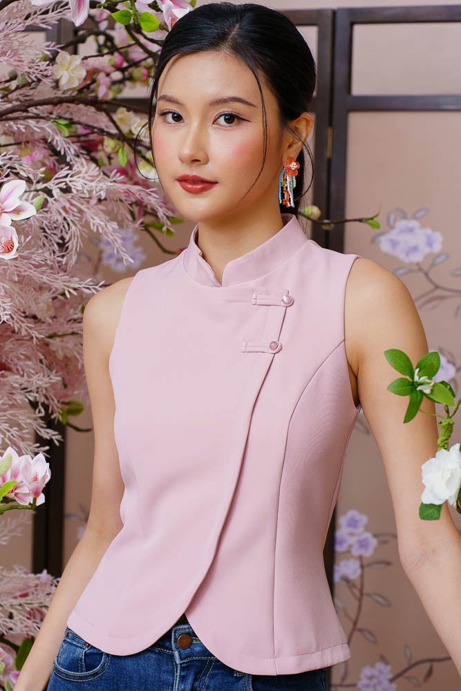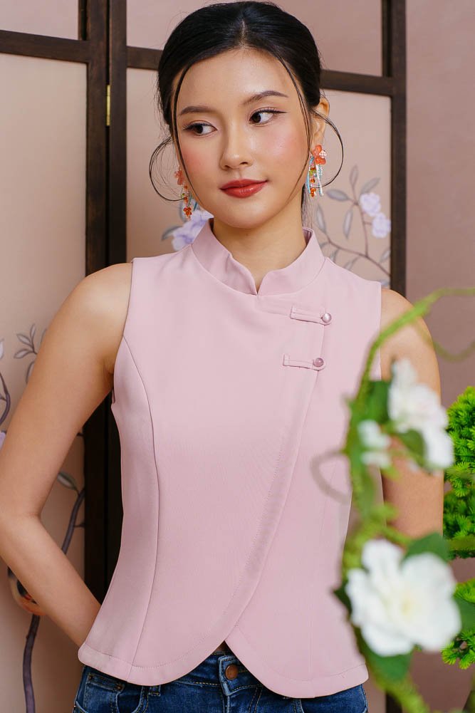 MOON GLADE CURVED HEM CHEONGSAM TOP (PINK)