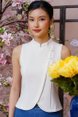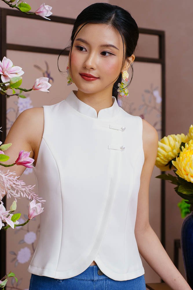 MOON GLADE CURVED HEM CHEONGSAM TOP (WHITE)