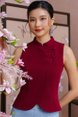 MOON GLADE CURVED HEM CHEONGSAM TOP (WINE)