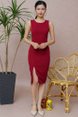 OCTAVIA WAVY SLIT DRESS (CRIMSON RED)