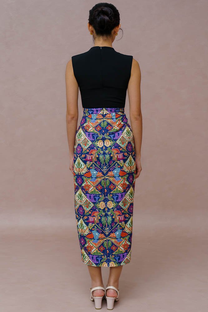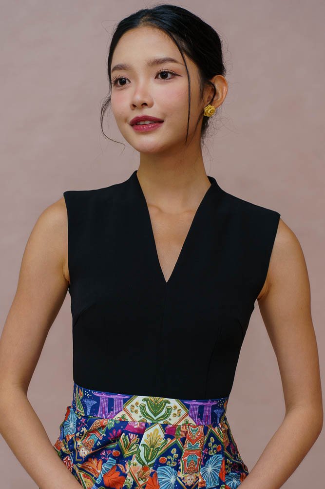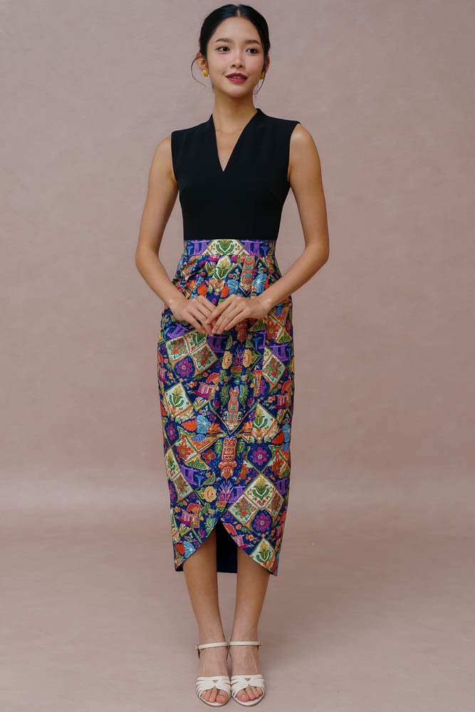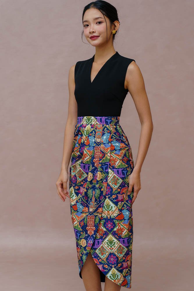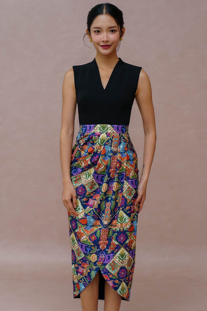OUR GARDEN CITY BATIK V-NECK DRESS (BLACK)