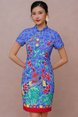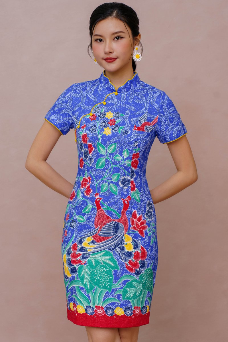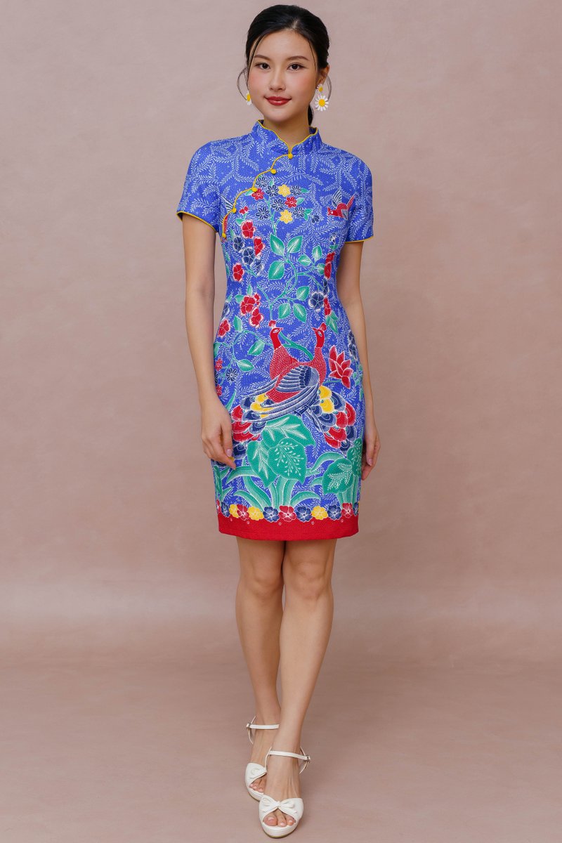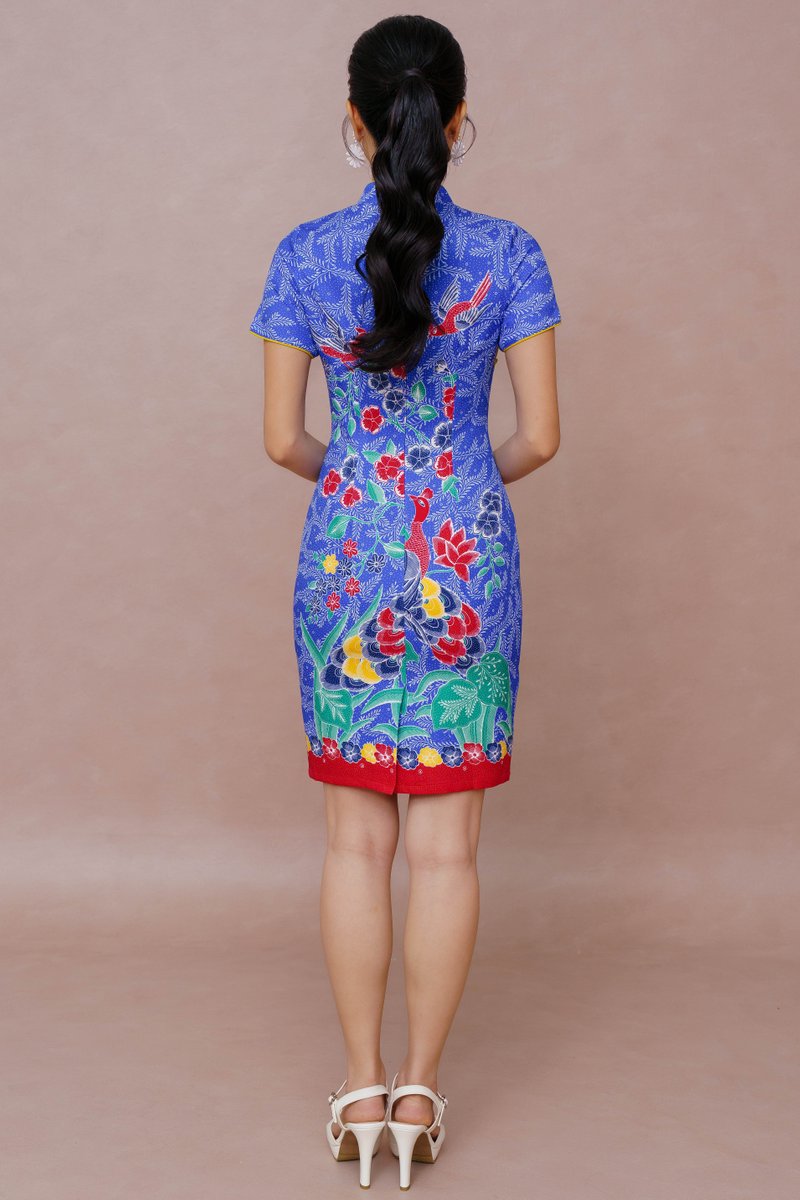 PARABLE OF THE TWIN PEACOCKS BATIK CHEONGSAM DRESS (CLASSIC BLUE)