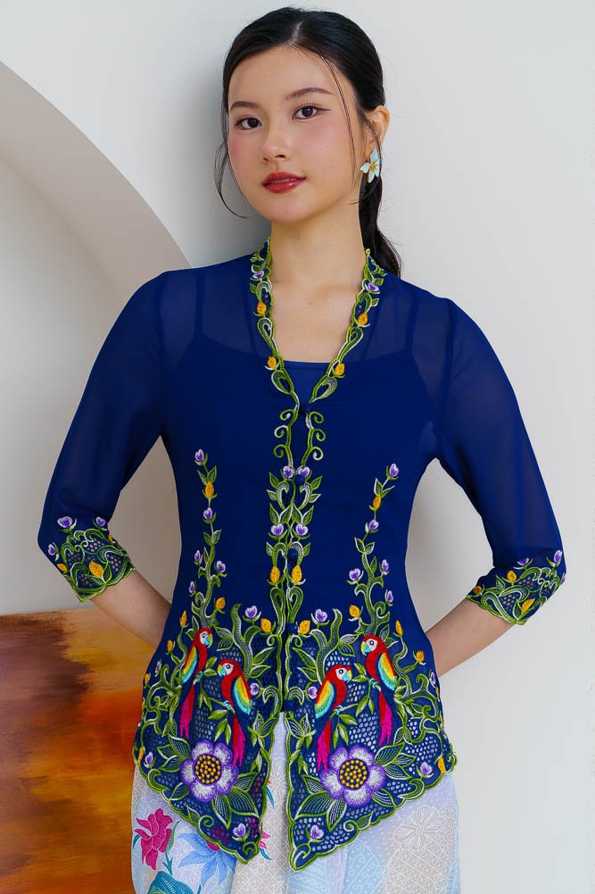 PARADIS AVIARY EMBROIDERY NYONYA KEBAYA (NAVY)