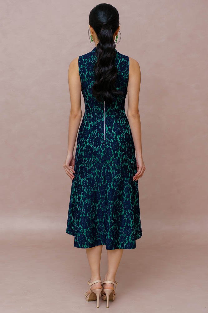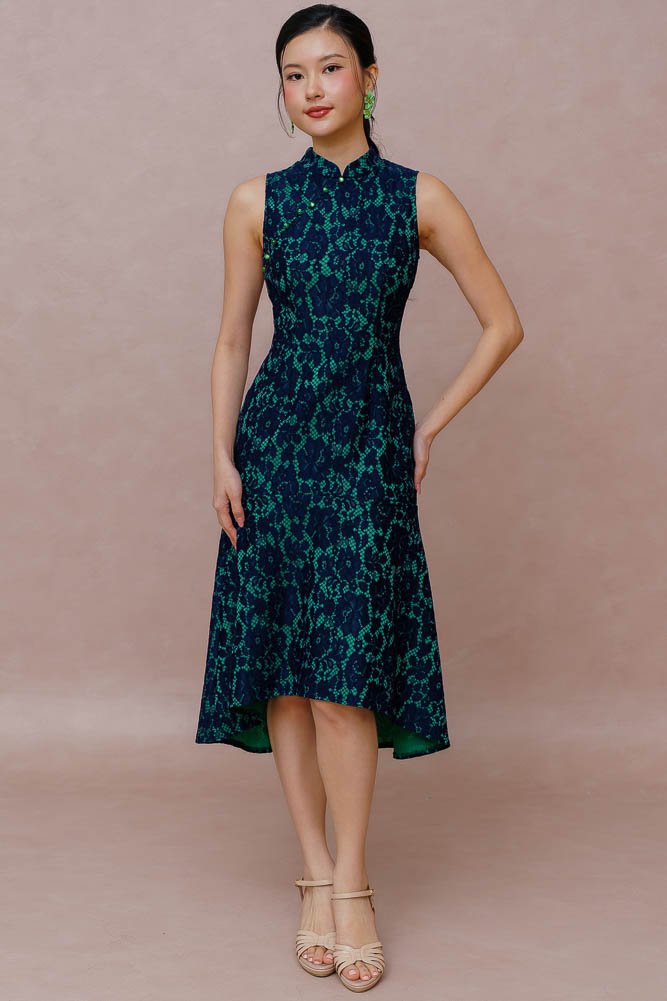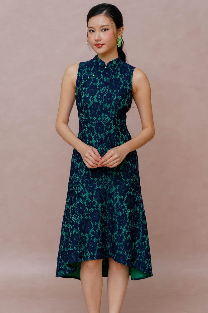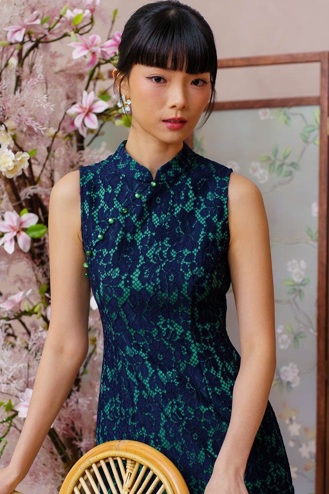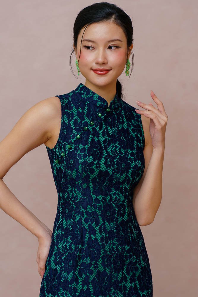 PEARL OF THE ORIENT GUIPURE LACE QIPAO (FRENCH NAVY)