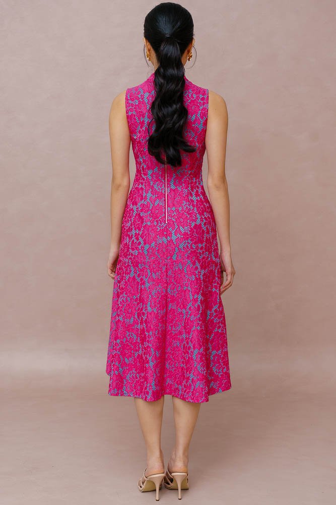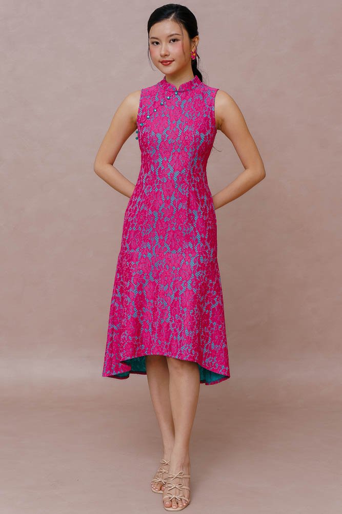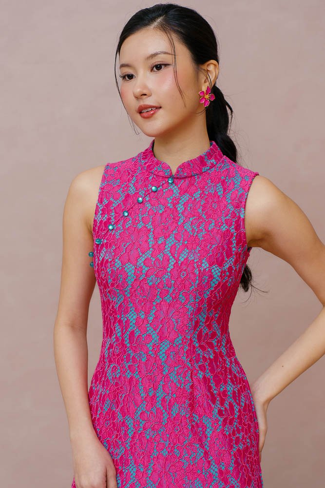 PEARL OF THE ORIENT GUIPURE LACE QIPAO (FUCHSIA PINK)