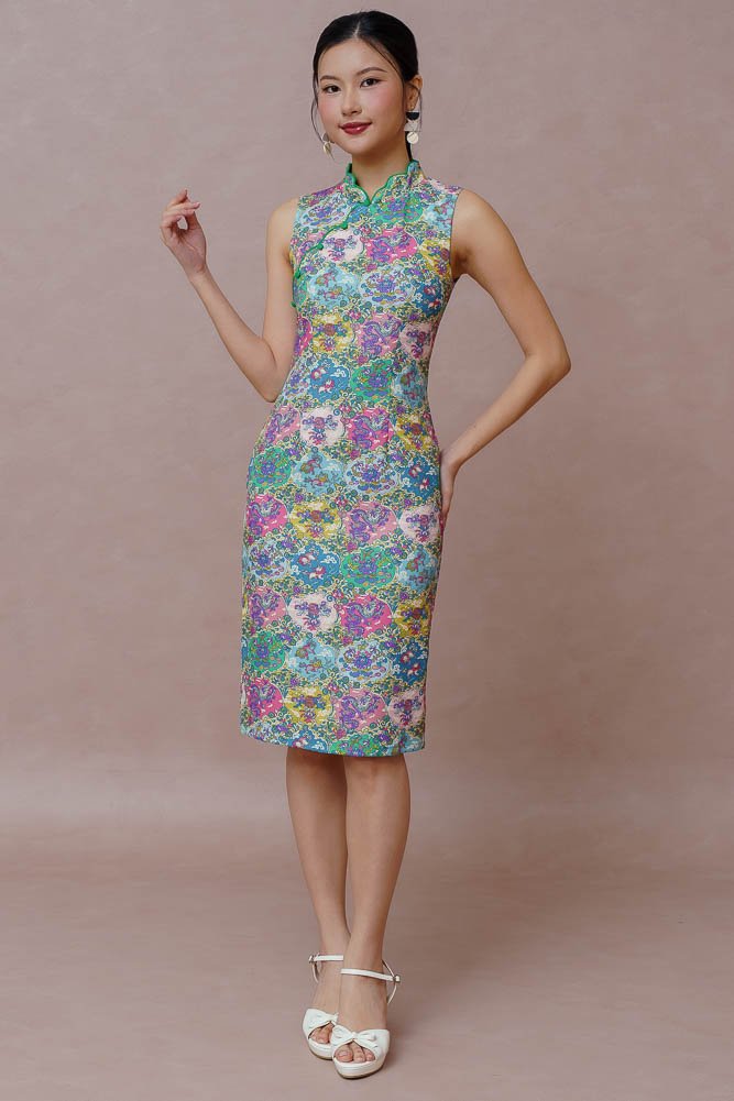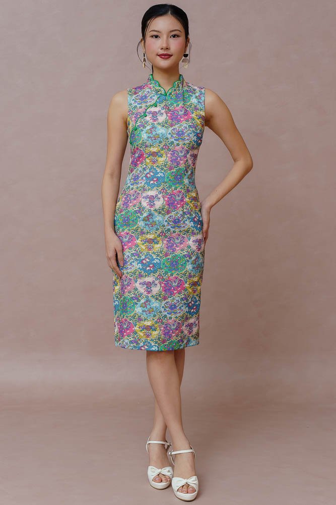 REALM OF THE CELESTIAL GUARDIANS BATIK CHEONGSAM DRESS (OPALINE)