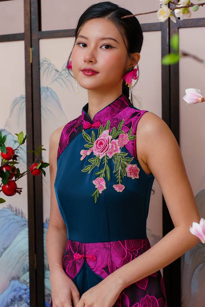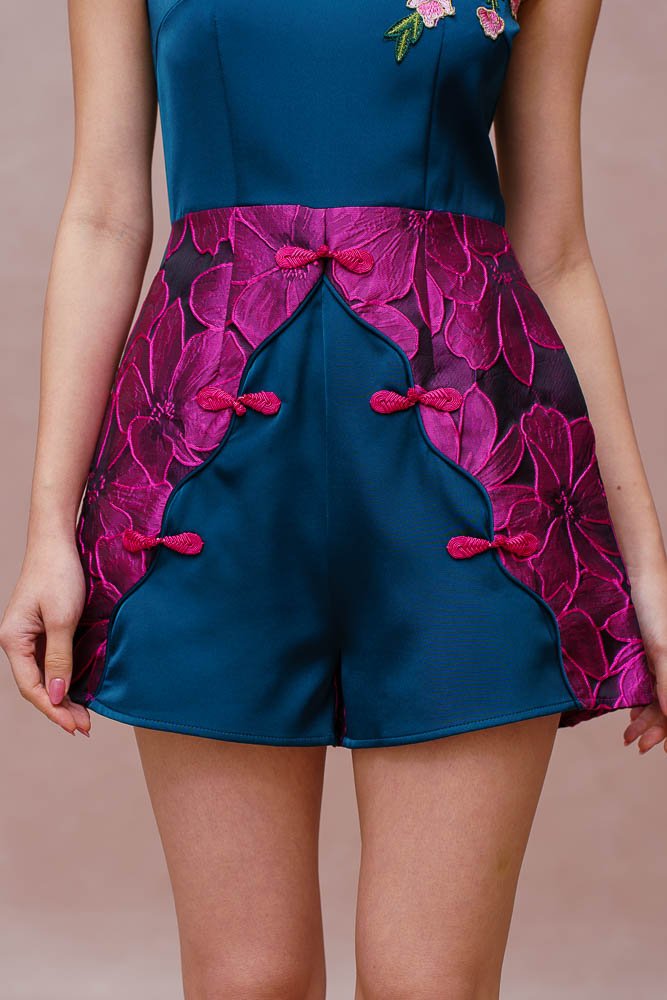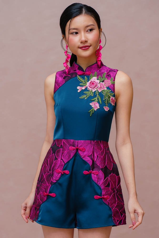 REGALIA OF ETERNAL BLOSSOMS BROCADE ROMPER (FUCHSIA WAVE)