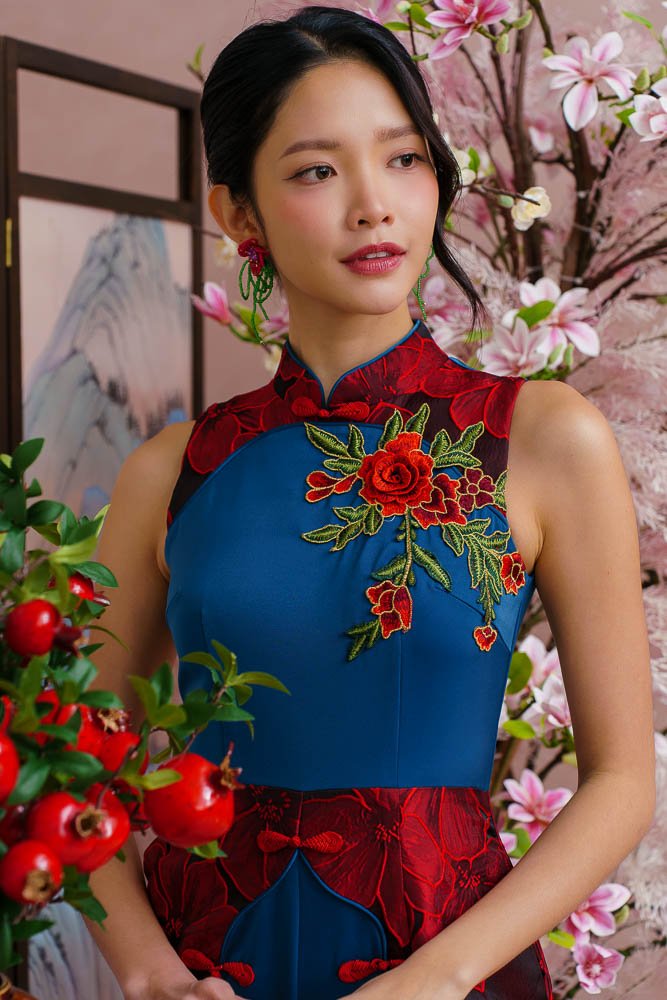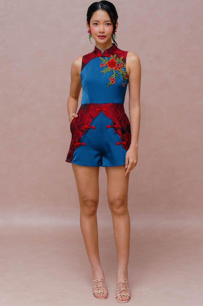 REGALIA OF ETERNAL BLOSSOMS BROCADE ROMPER (MIDNIGHT CRIMSONS)