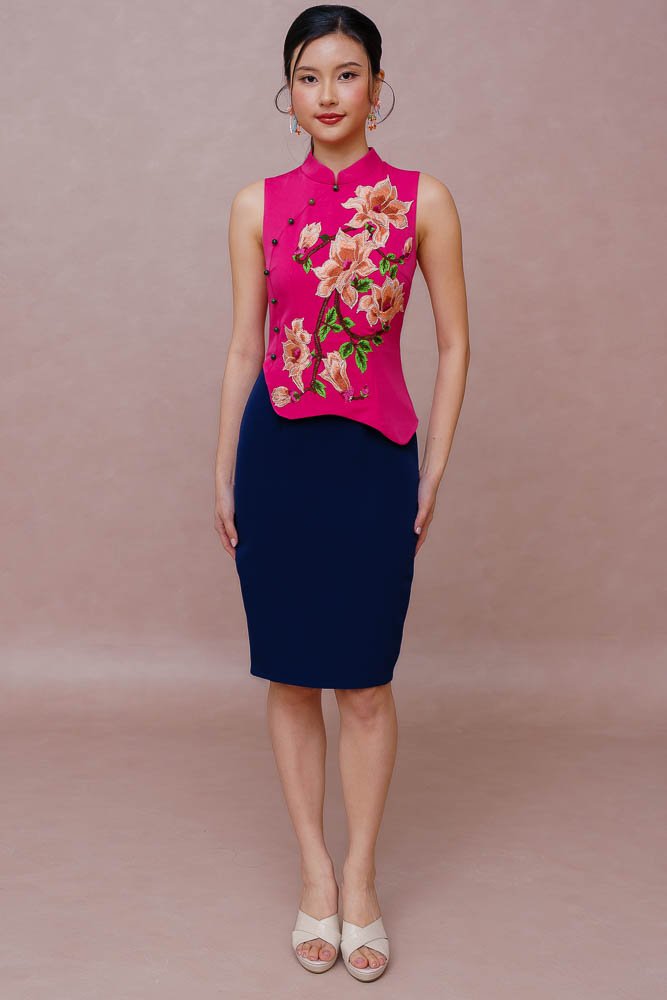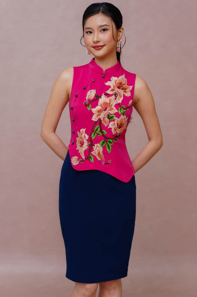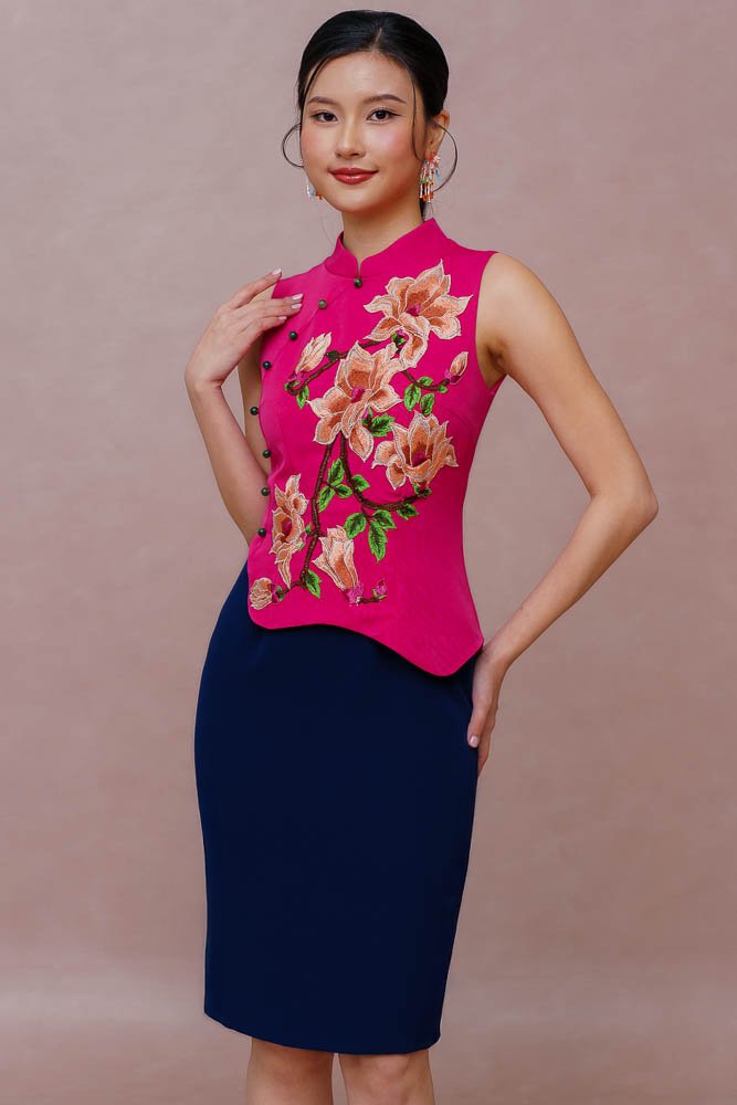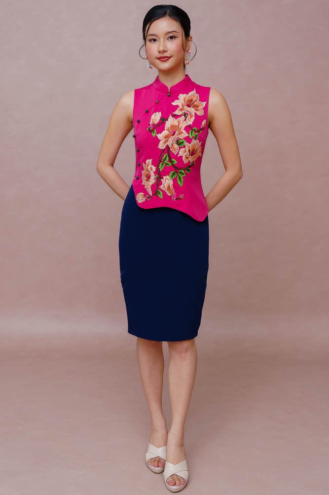 REIGN OF THE IMPERIAL PEONY EMBROIDERY QIPAO (FUCHSIA PINK)