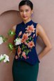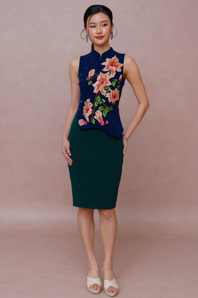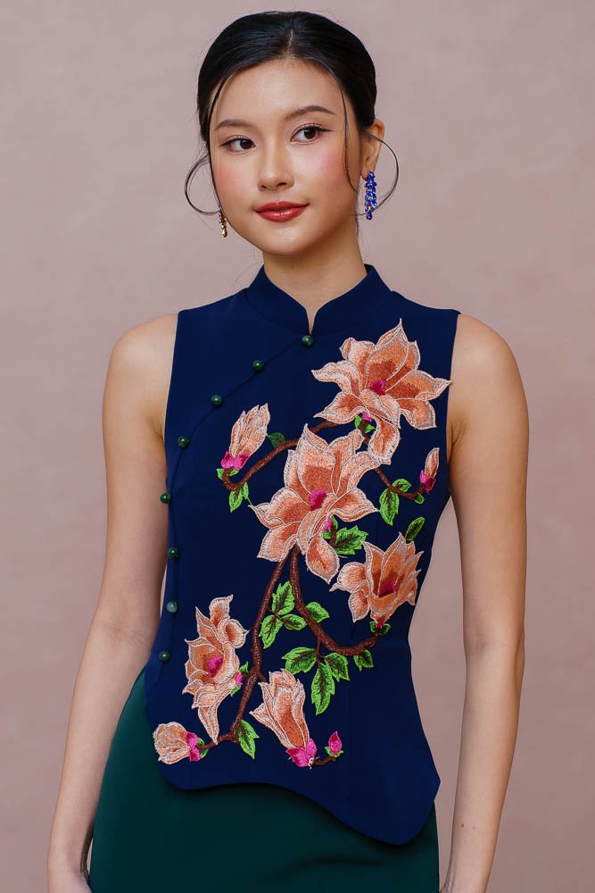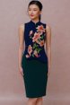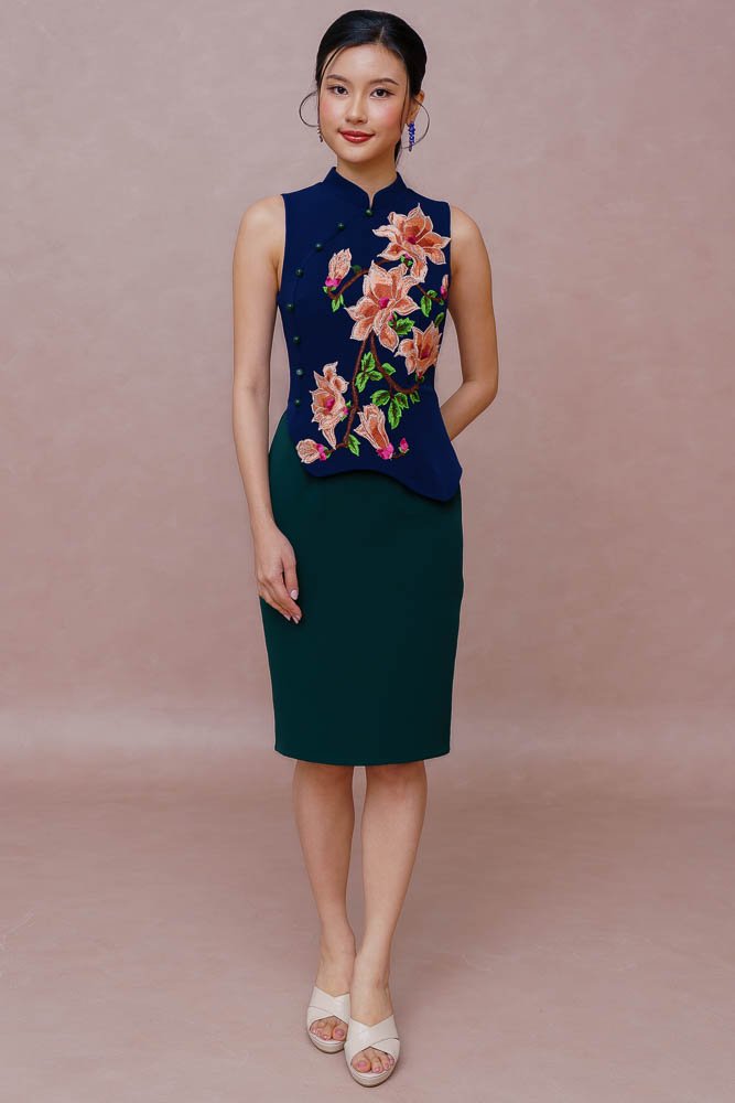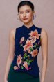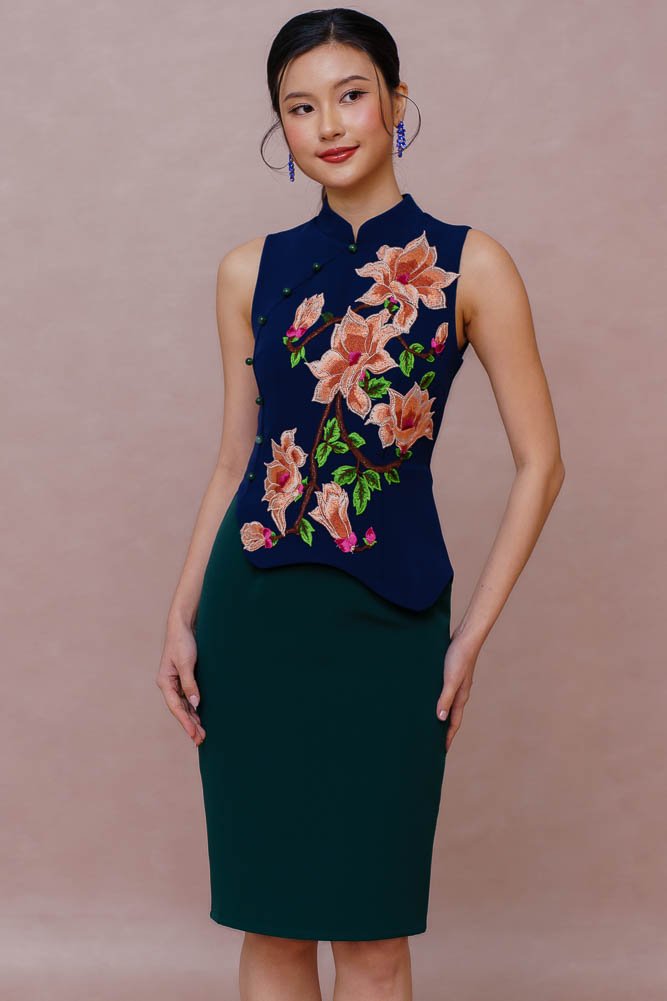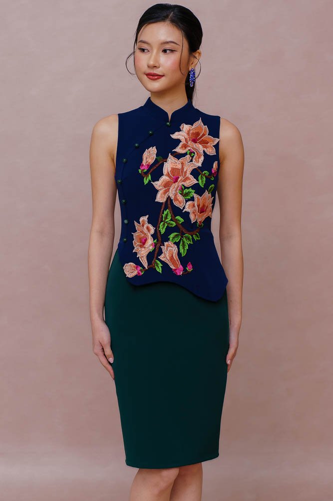 REIGN OF THE IMPERIAL PEONY EMBROIDERY QIPAO (ROYAL NAVY)