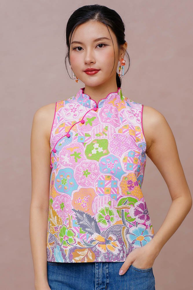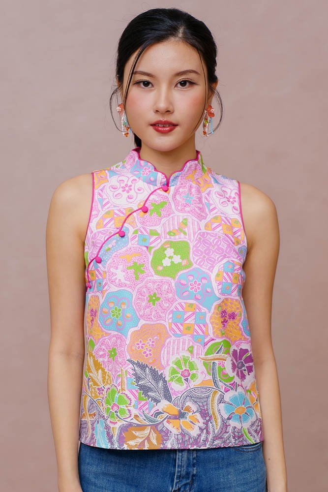 RONA MANIS BATIK MOSAIC CHEONGSAM TOP (BUBBLEGUM POP)