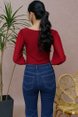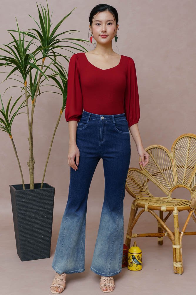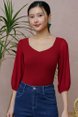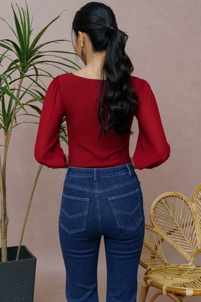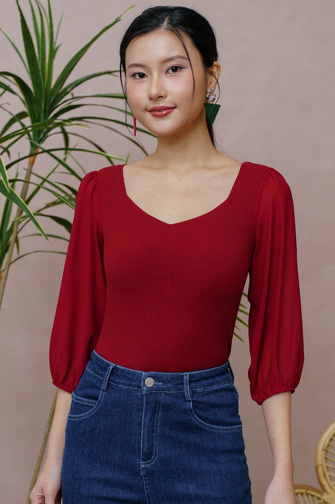 SASKIA PADDED TOP WITH TULLE SLEEVES (WINE RED)