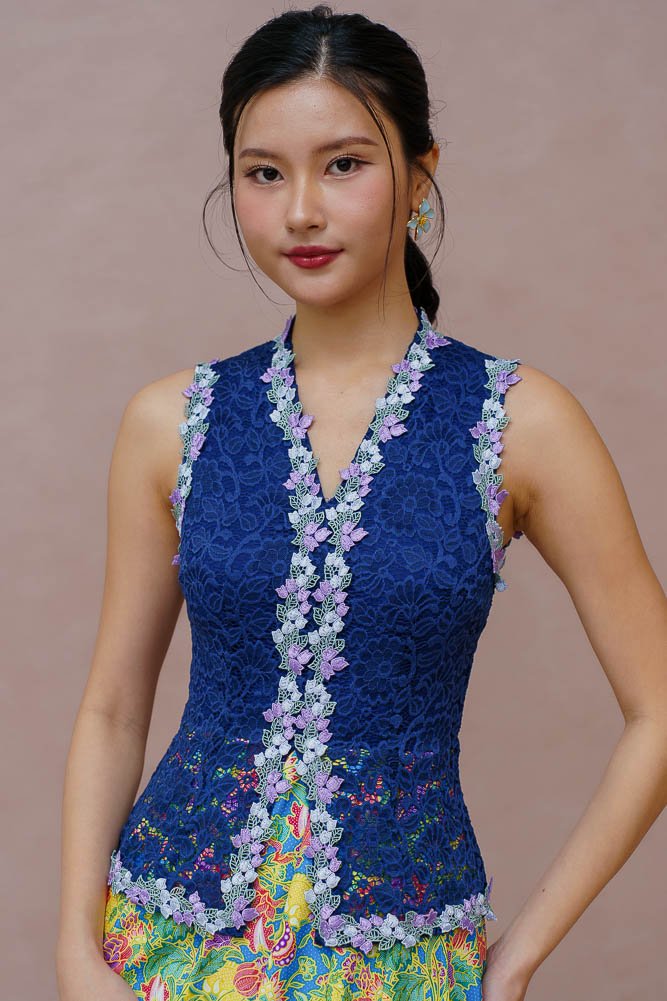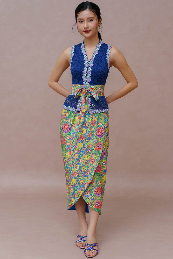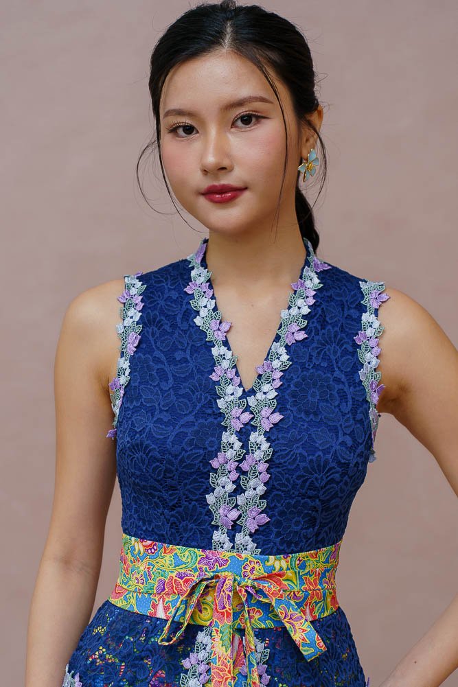 SONG OF THE DAYANG LACE KEBAYA DRESS (LIGHT NAVY)