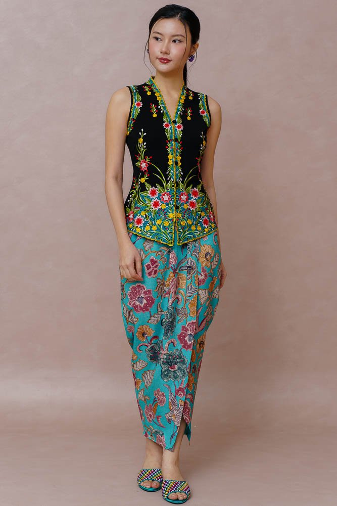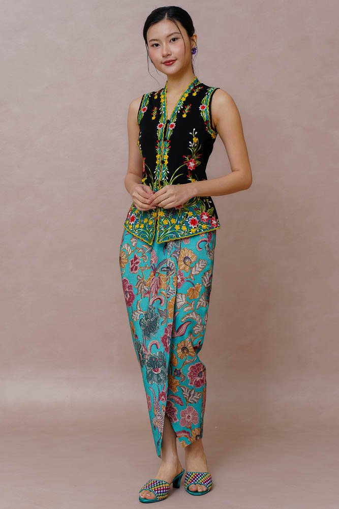 Note: The embroidery nyonya kebaya worn by the model is sold separately.