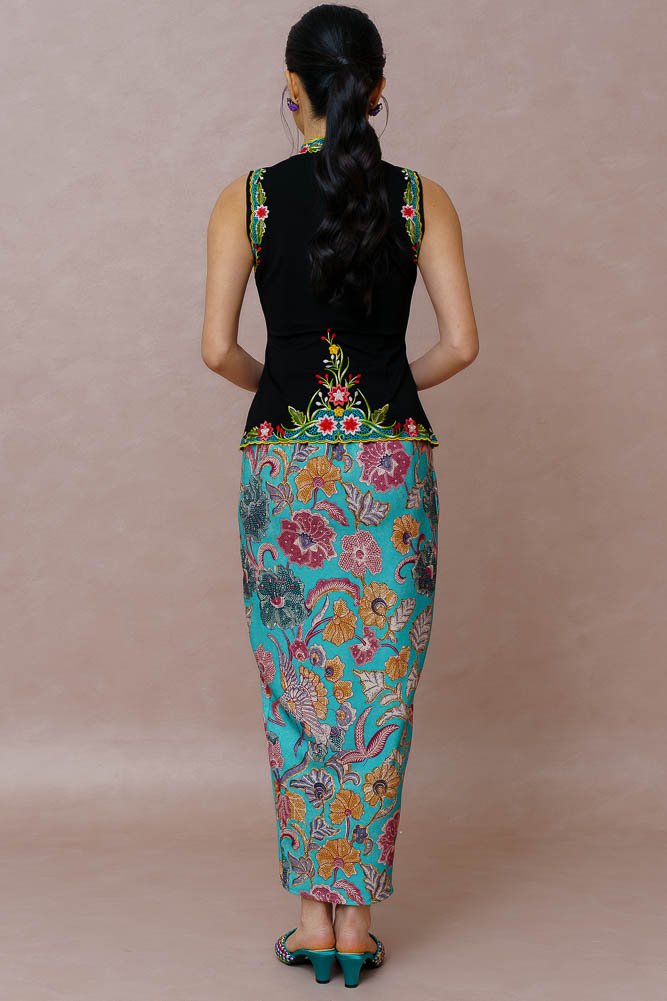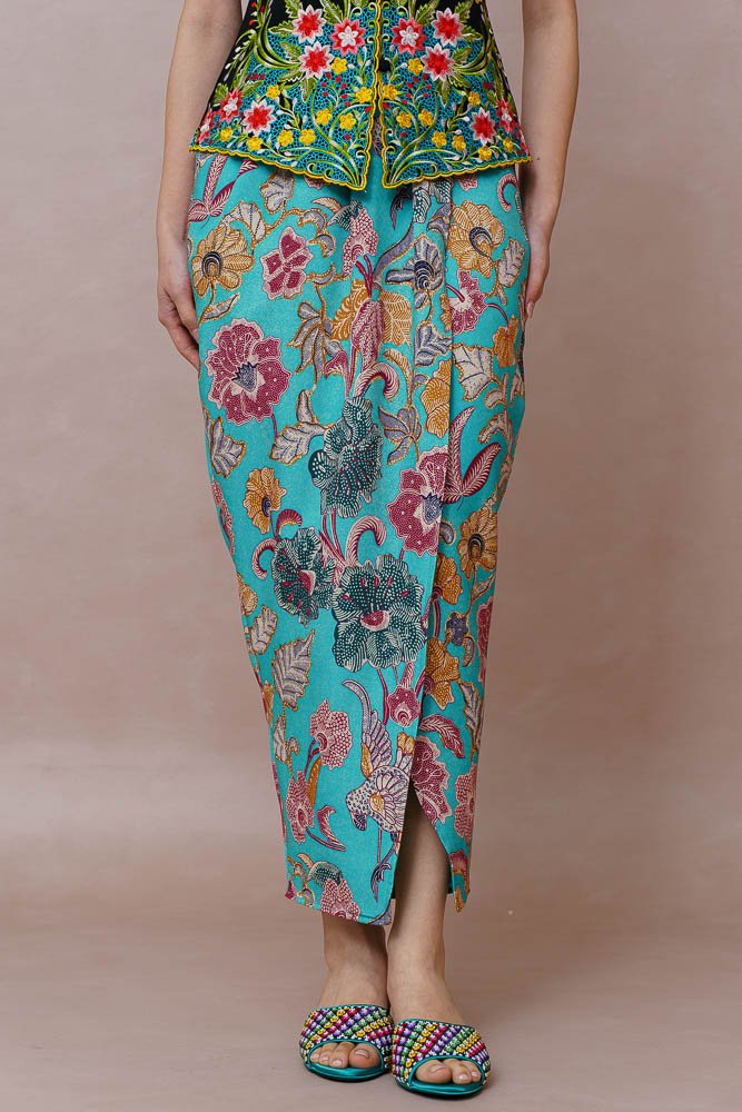 STARDUST PETALS BATIK NYONYA SKIRT (NEON TEAL)