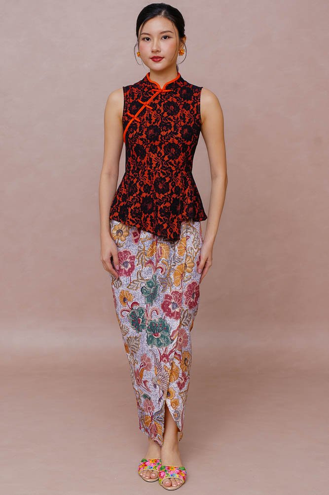 Note: The embroidery nyonya kebaya worn by the model is sold separately.