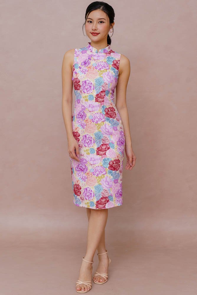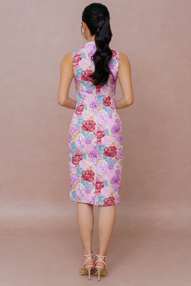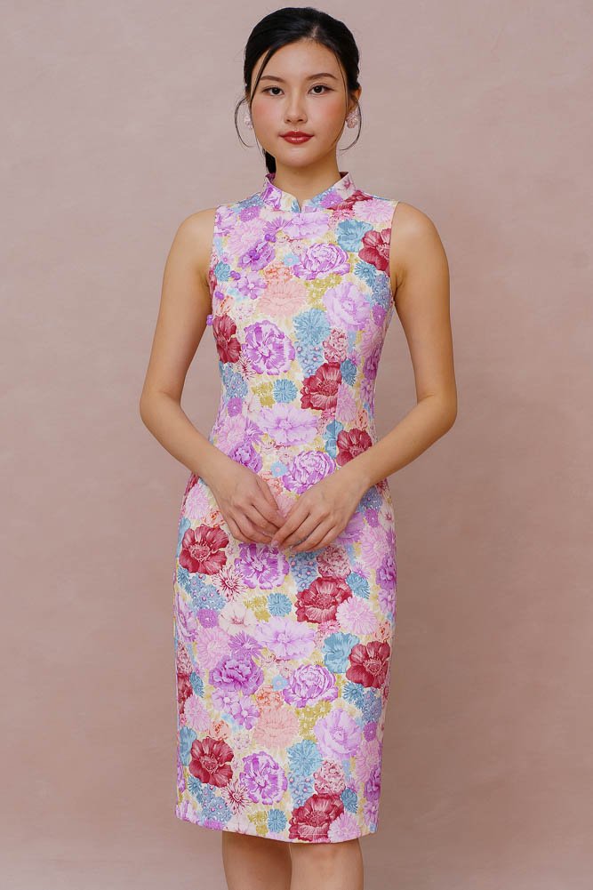 TENDER BLOSSOM FLORAL CHEONGSAM DRESS (LAVENDER LEMONADE)