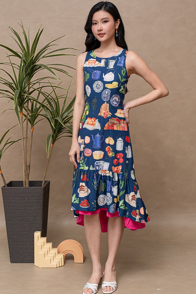 THE BARNYARD REVERSIBLE DRESS (NAVY/FUCHSIA PINK)