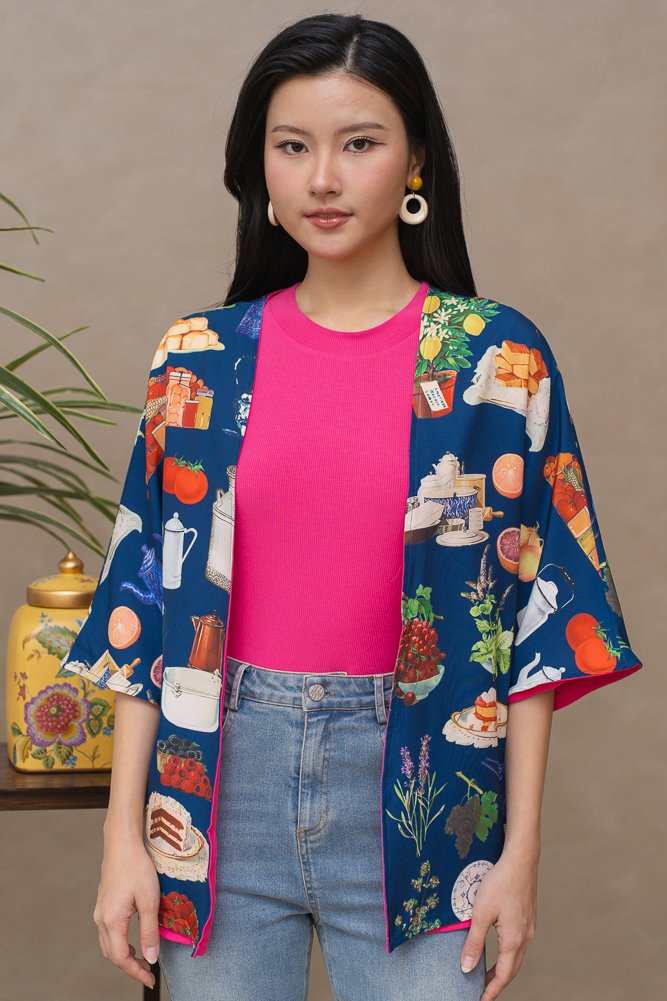THE BARNYARD REVERSIBLE KIMONO JACKET (NAVY FUCHSIA PINK)