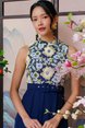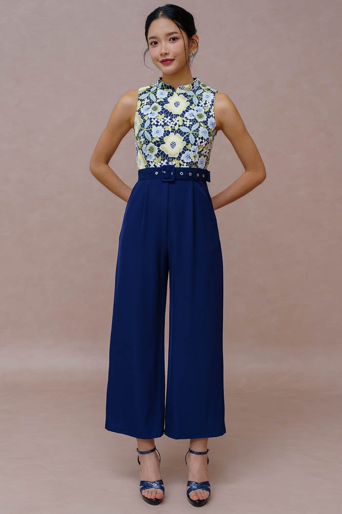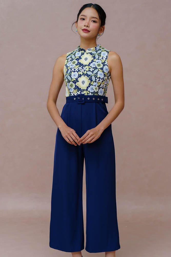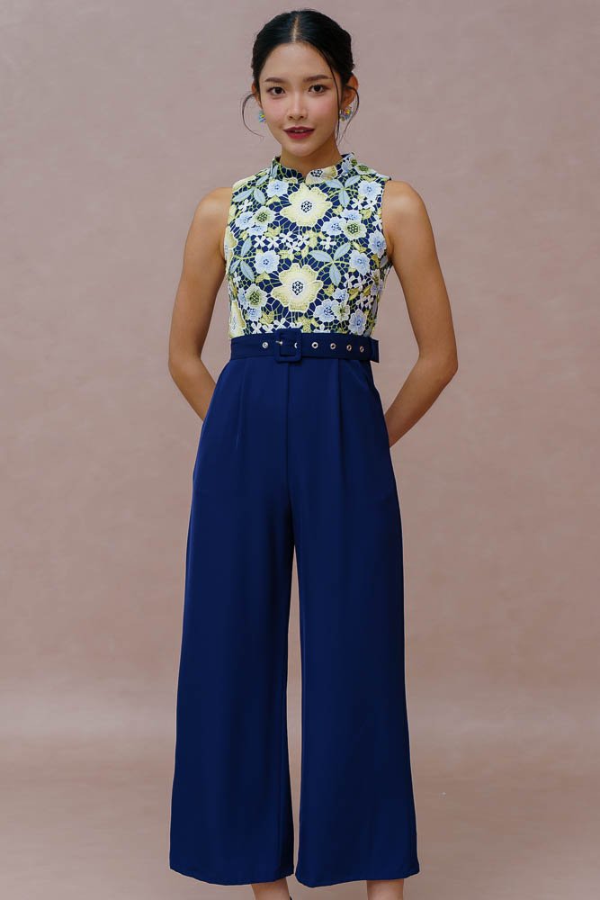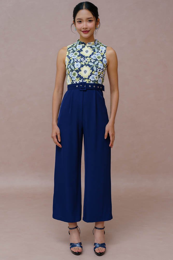 THE DREAMWEAVER CROCHET CHEONGSAM JUMPSUIT (ROYAL NAVY)