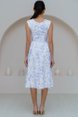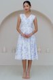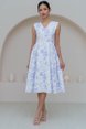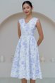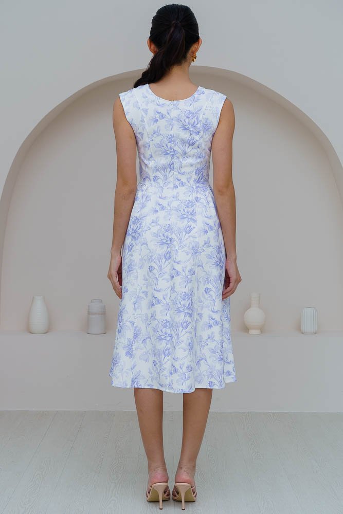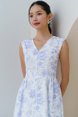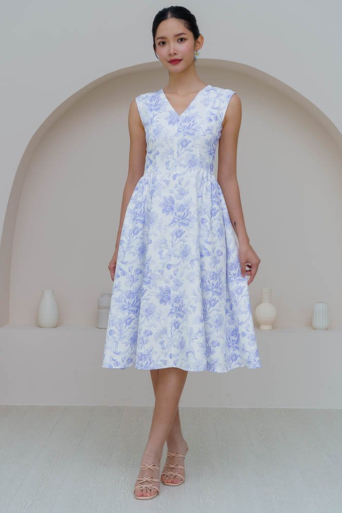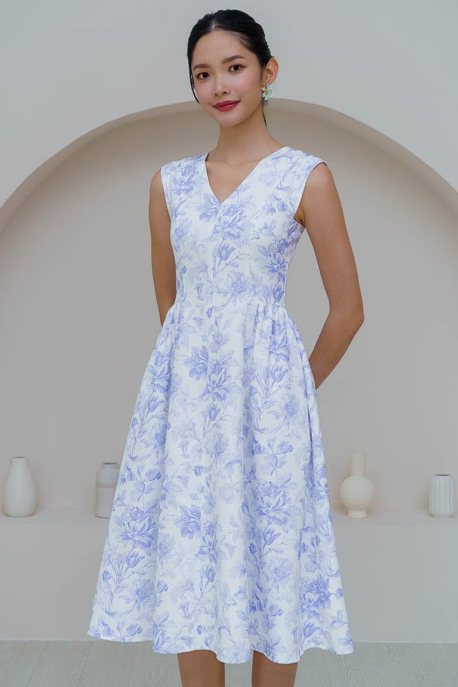 THE ENGLISH GARDEN V NECK FLARE DRESS (BLUE TOILE)