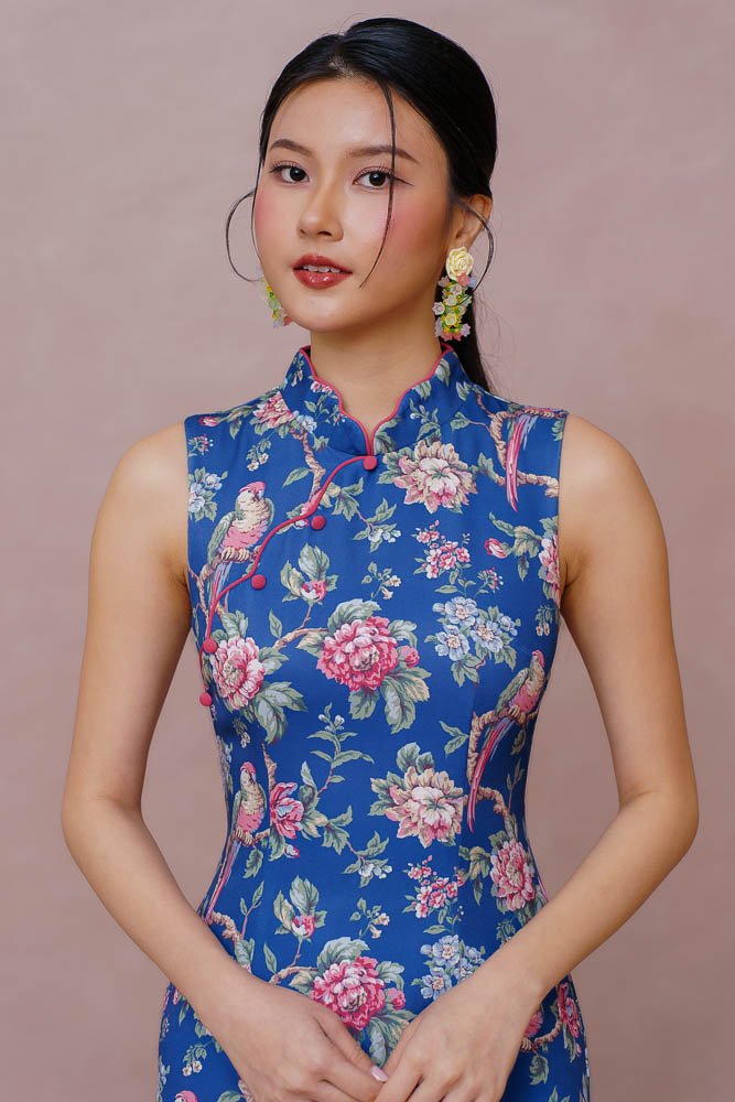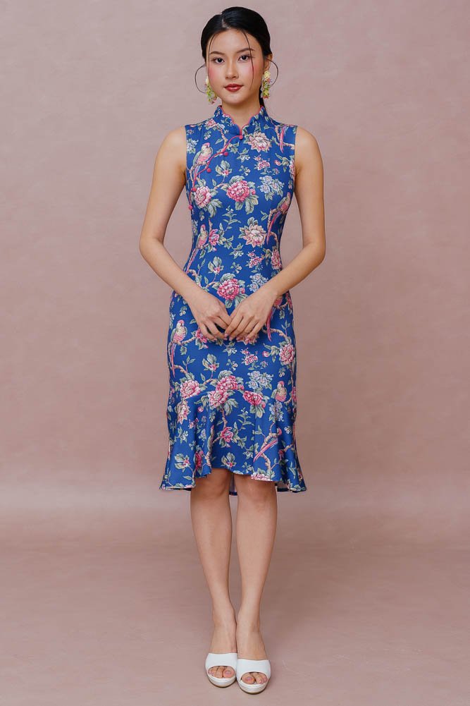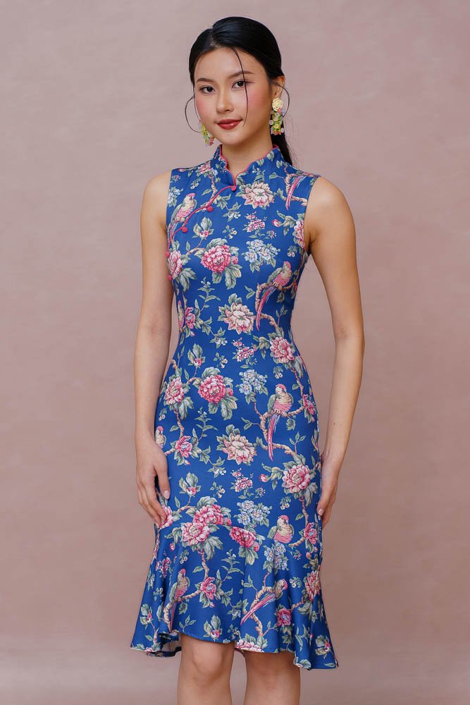 THE EVERCHIME GARDEN CHEONGSAM DRESS (CHAMBRAY BLUE)