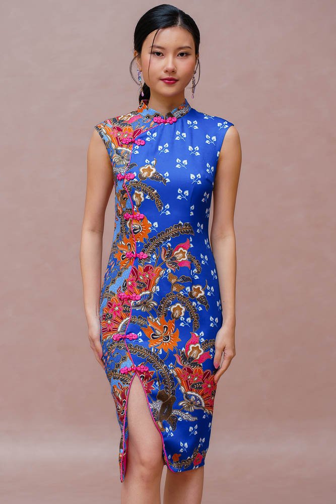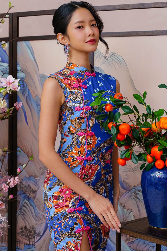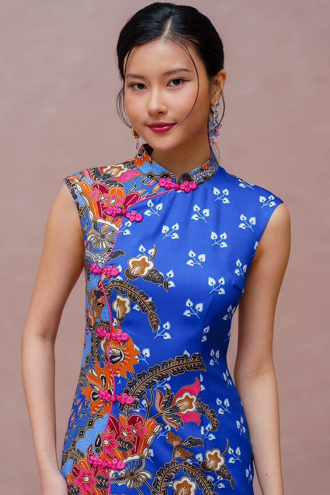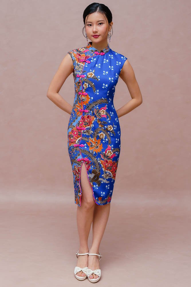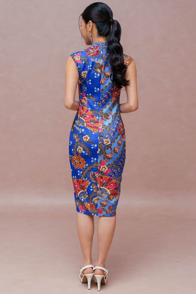 THE GOLDEN BLOSSOMS BATIK CHEONGSAM DRESS (ROYAL BLUE)