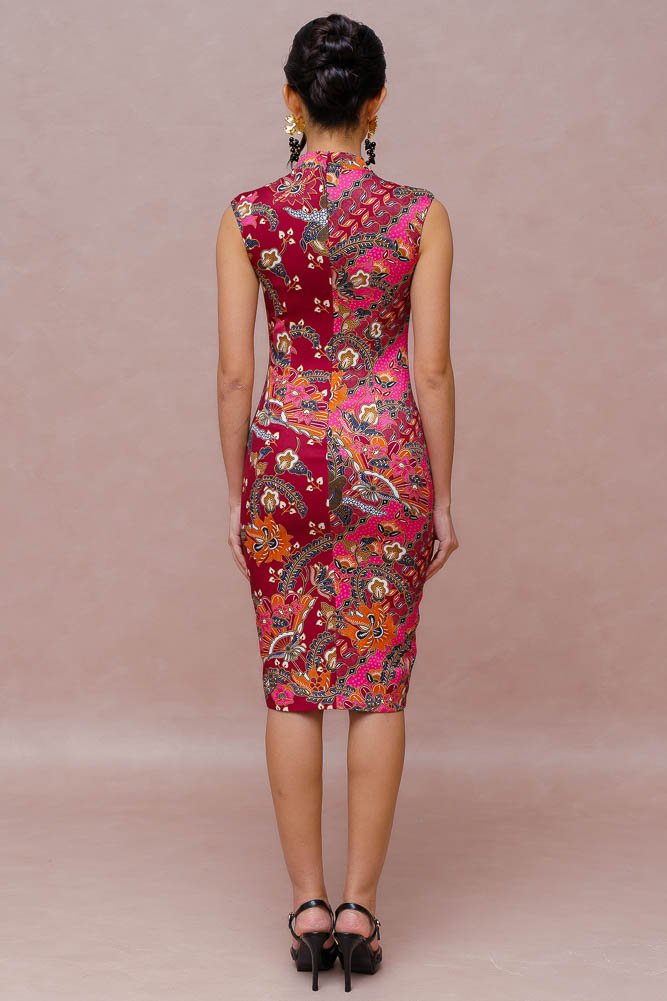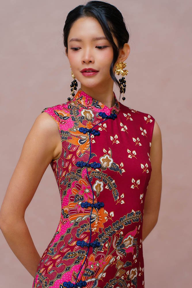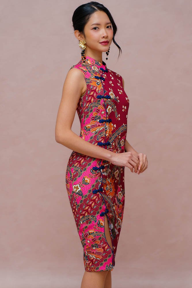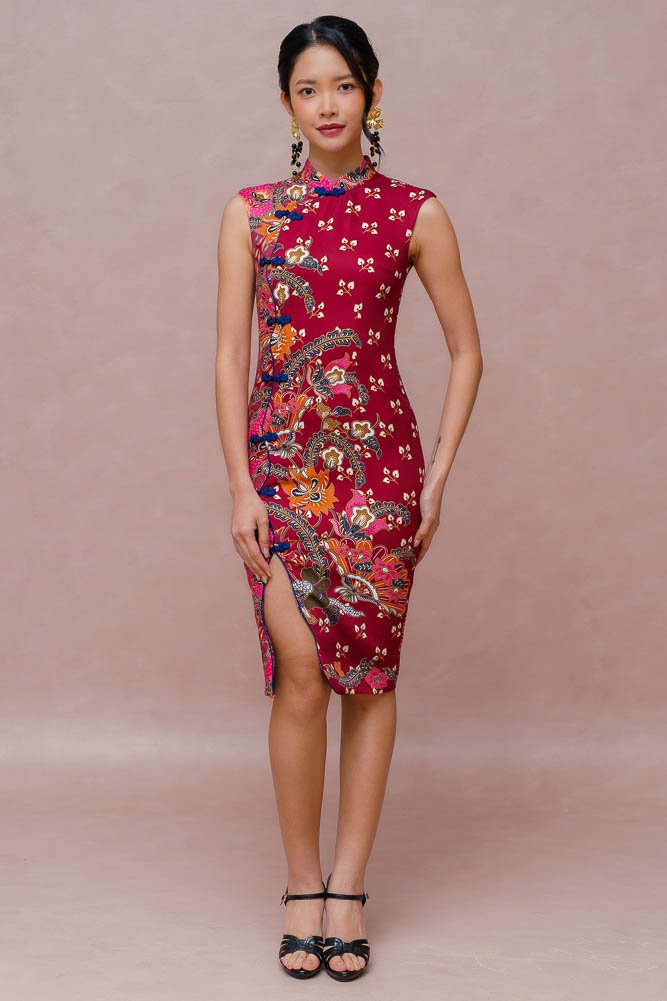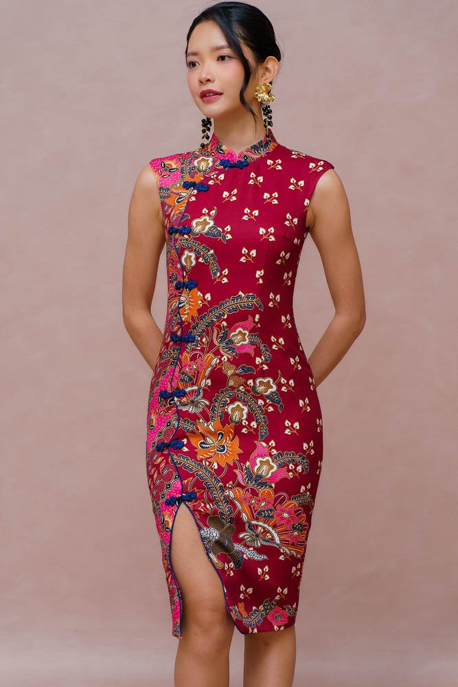 THE GOLDEN BLOSSOMS BATIK CHEONGSAM DRESS (VELVET WINE)