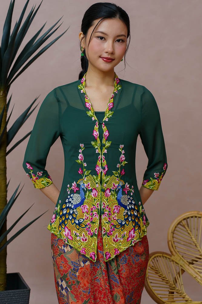 THE GOLDEN CREST EMBROIDERY NYONYA KEBAYA (EMERALD GREEN)