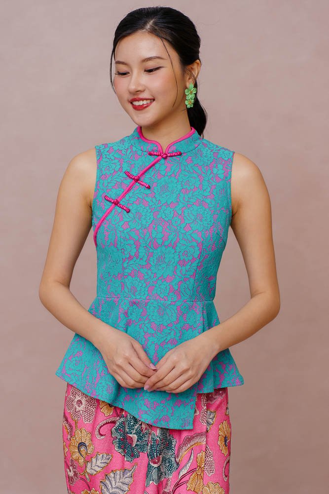 THE GOLDEN HOUR GUIPURE LACE CHEONGSAM TOP (FUCHSIA MENTHE)