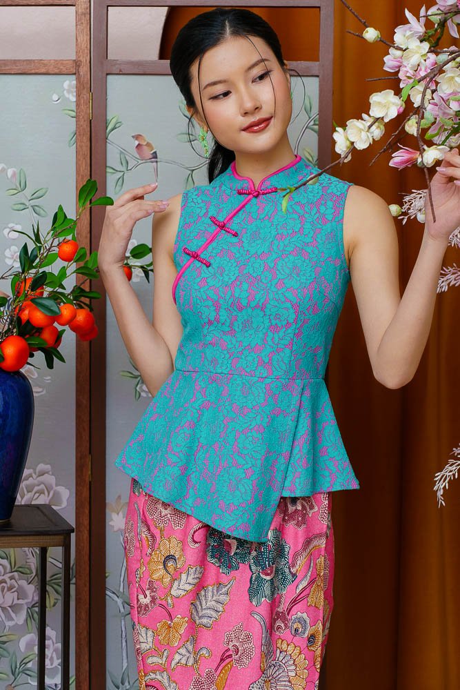 Note: The batik nyonya skirt worn by the model is sold separately.