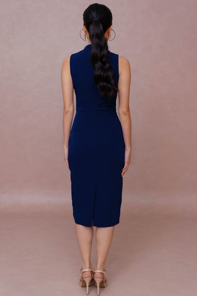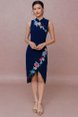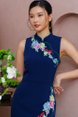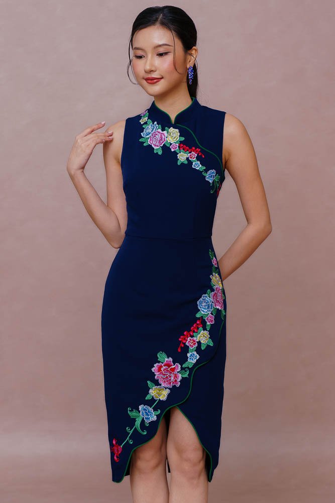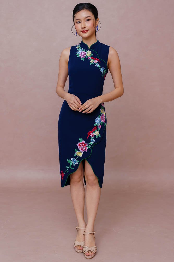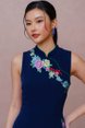 THE GRAND FLORAISON EMBROIDERY CHEONGSAM DRESS (NAVY)
