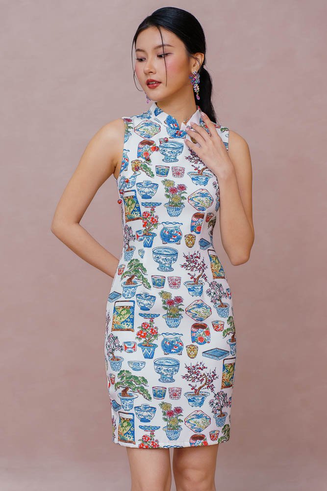THE PORCELAIN MAKER CHEONGSAM DRESS (WHITE)