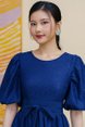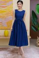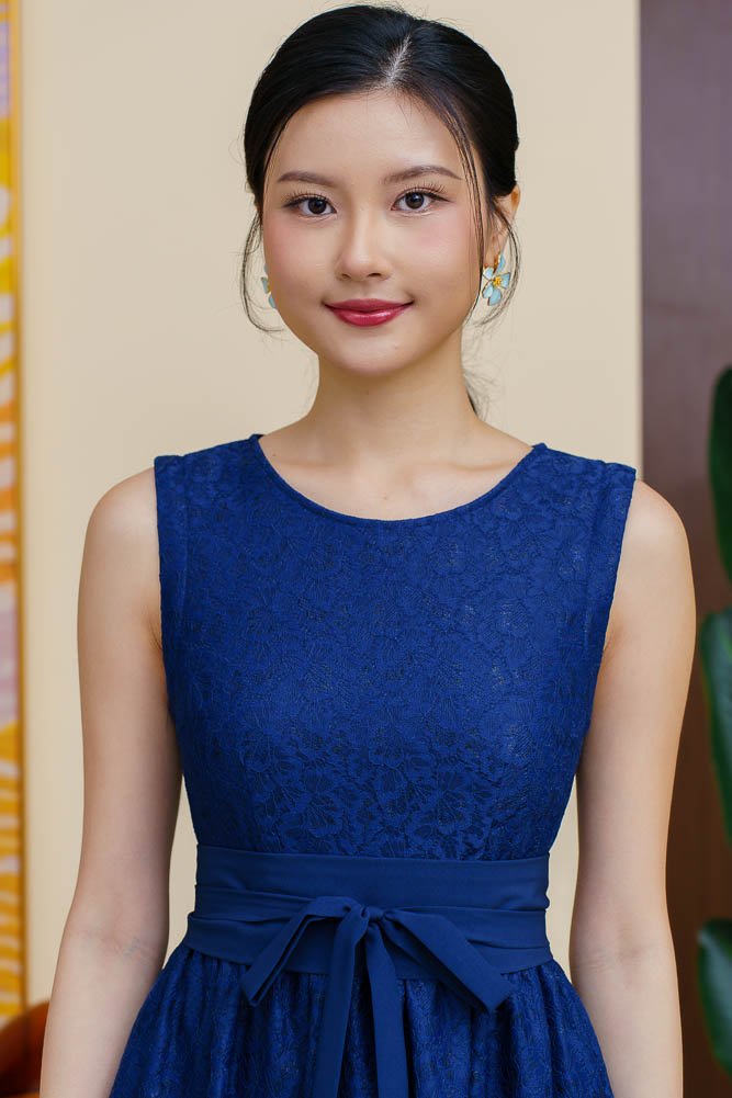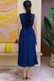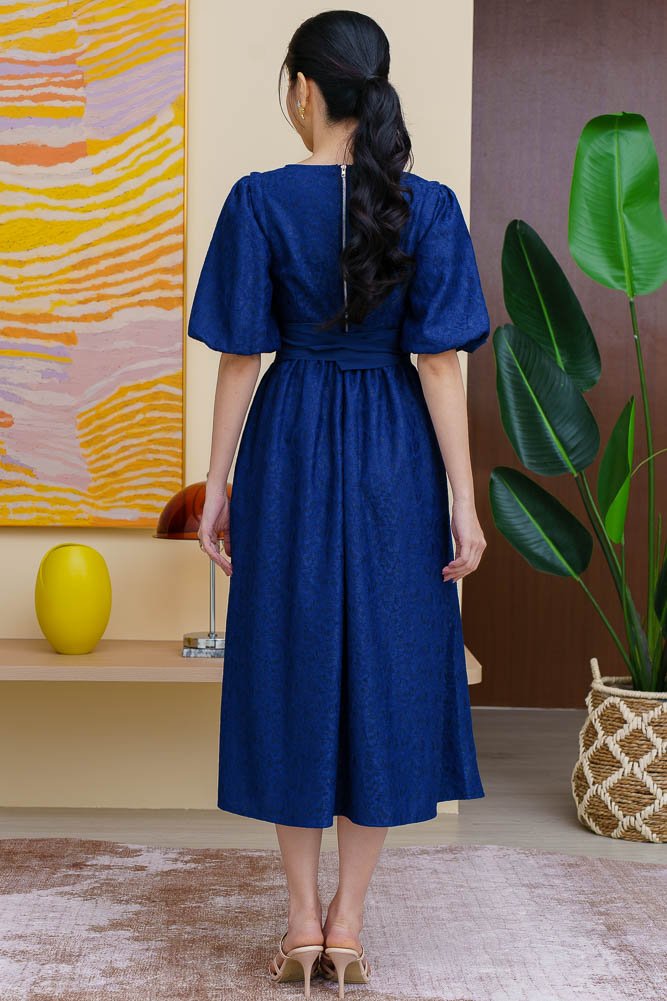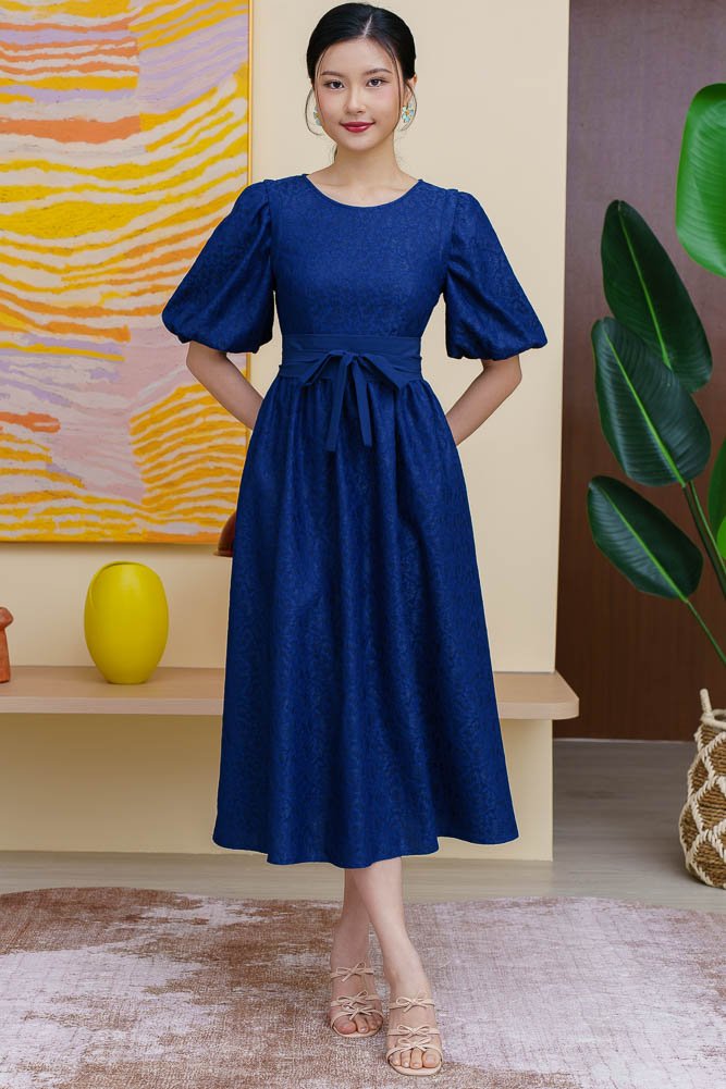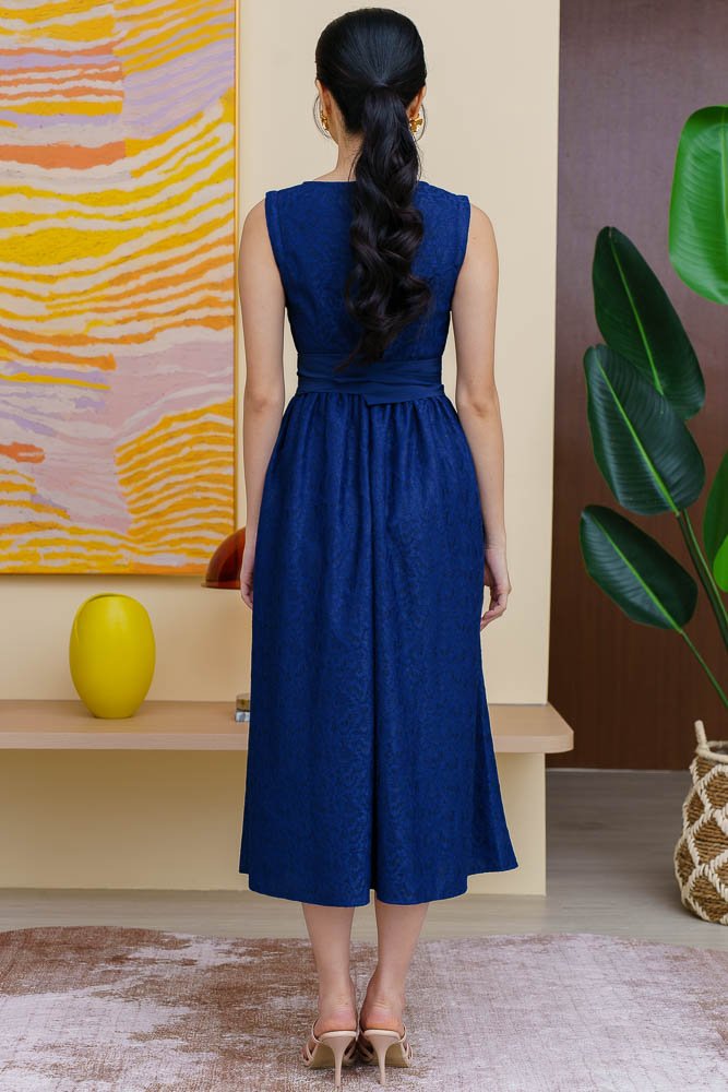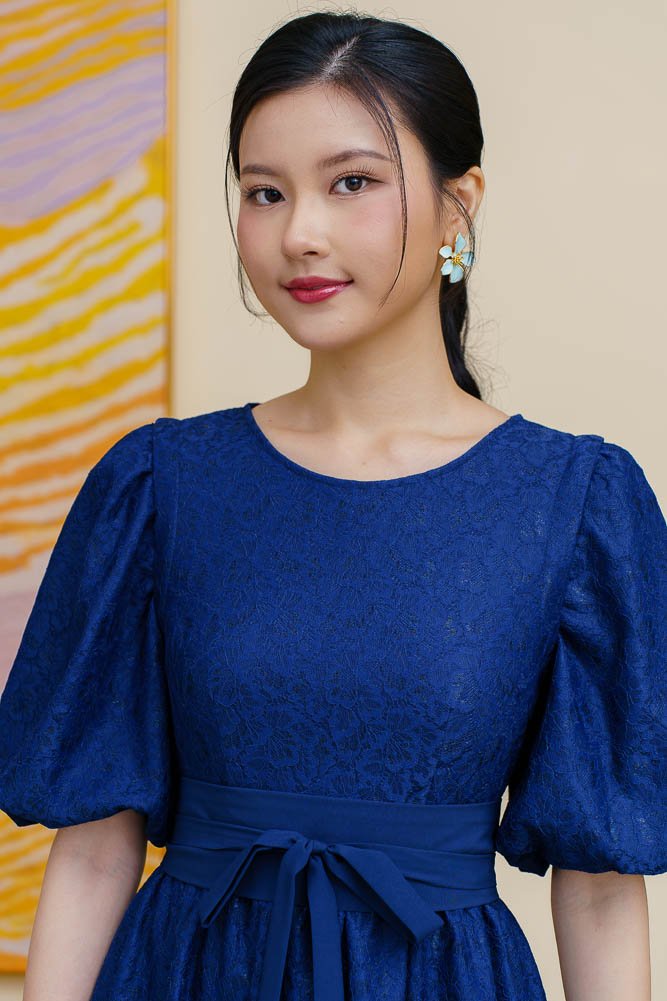 THEODORA LACE FLARE DRESS WITH DETACHABLE SLEEVES (NAVY)