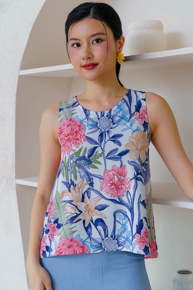 TILLIE BATIK REVERSIBLE TOP (WHITE COBALT)