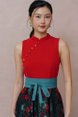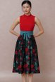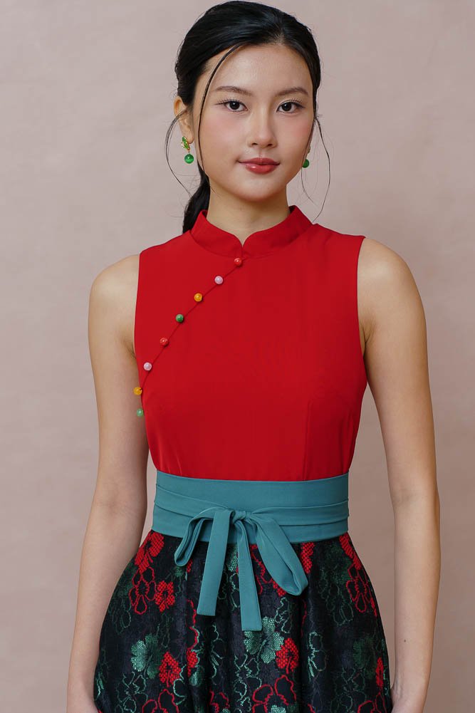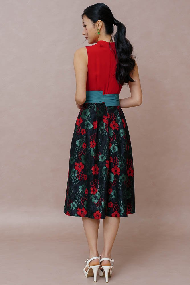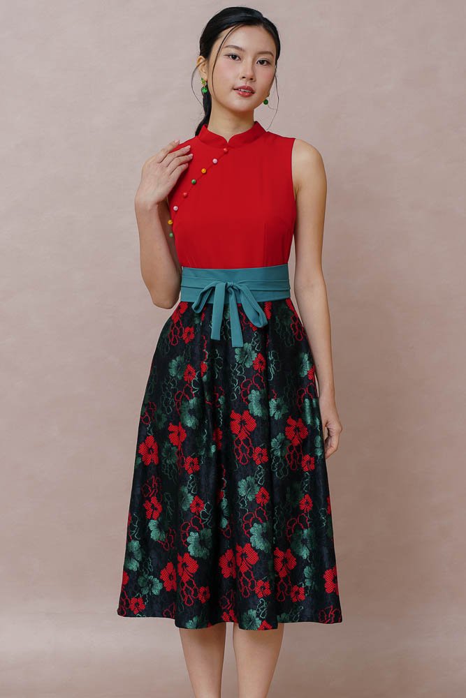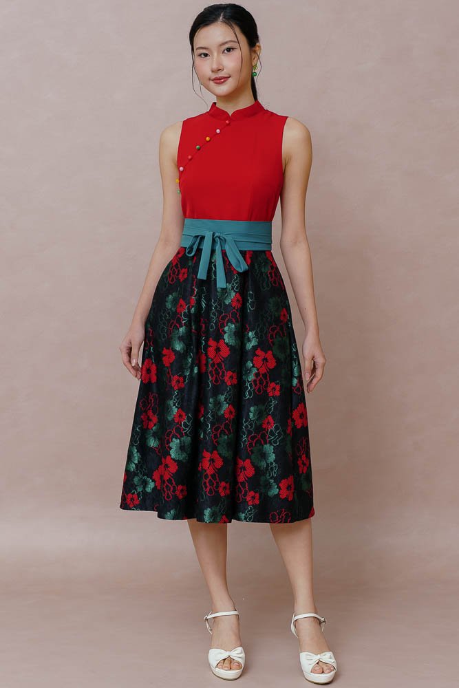 TIMELESS WEAVE HALF & HALF LACE CHEONGSAM DRESS (CRIMSON)