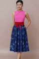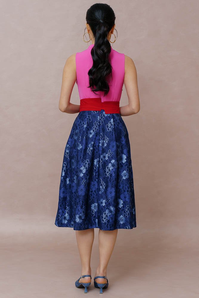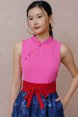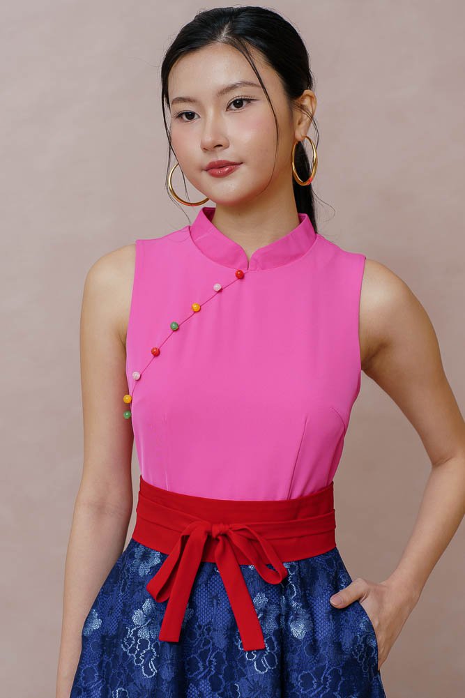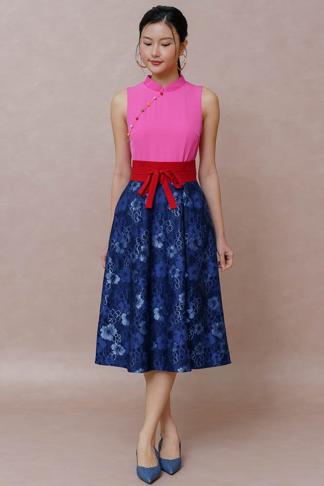 TIMELESS WEAVE HALF & HALF LACE CHEONGSAM DRESS (FUCHSIA PINK)