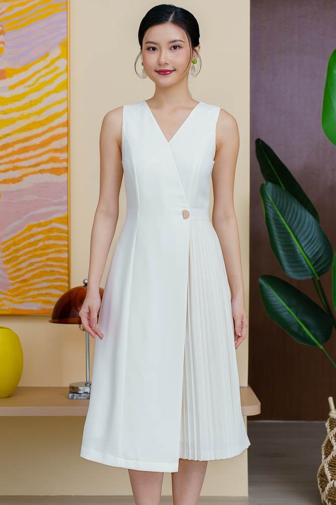 URBANA FOLD PLEATED DRESS (WHITE)