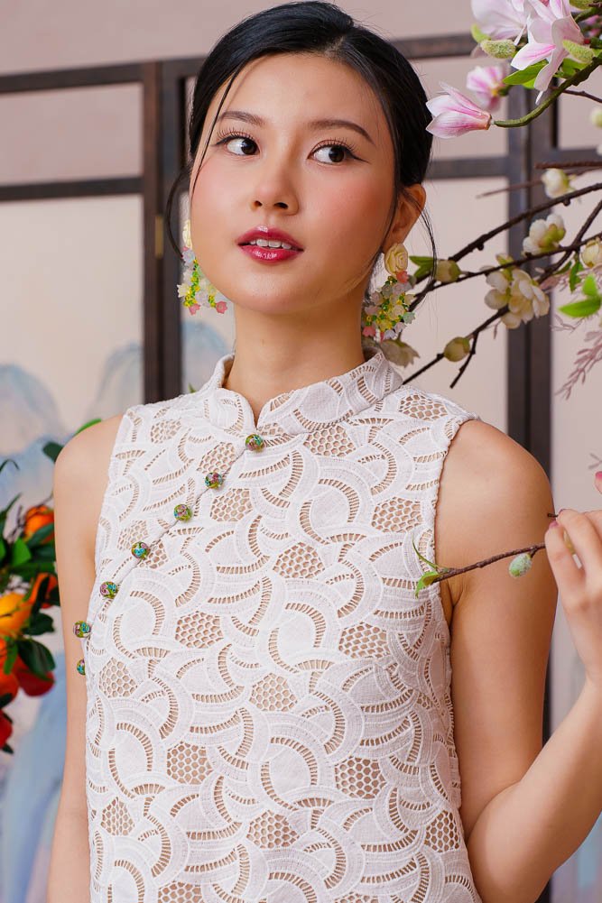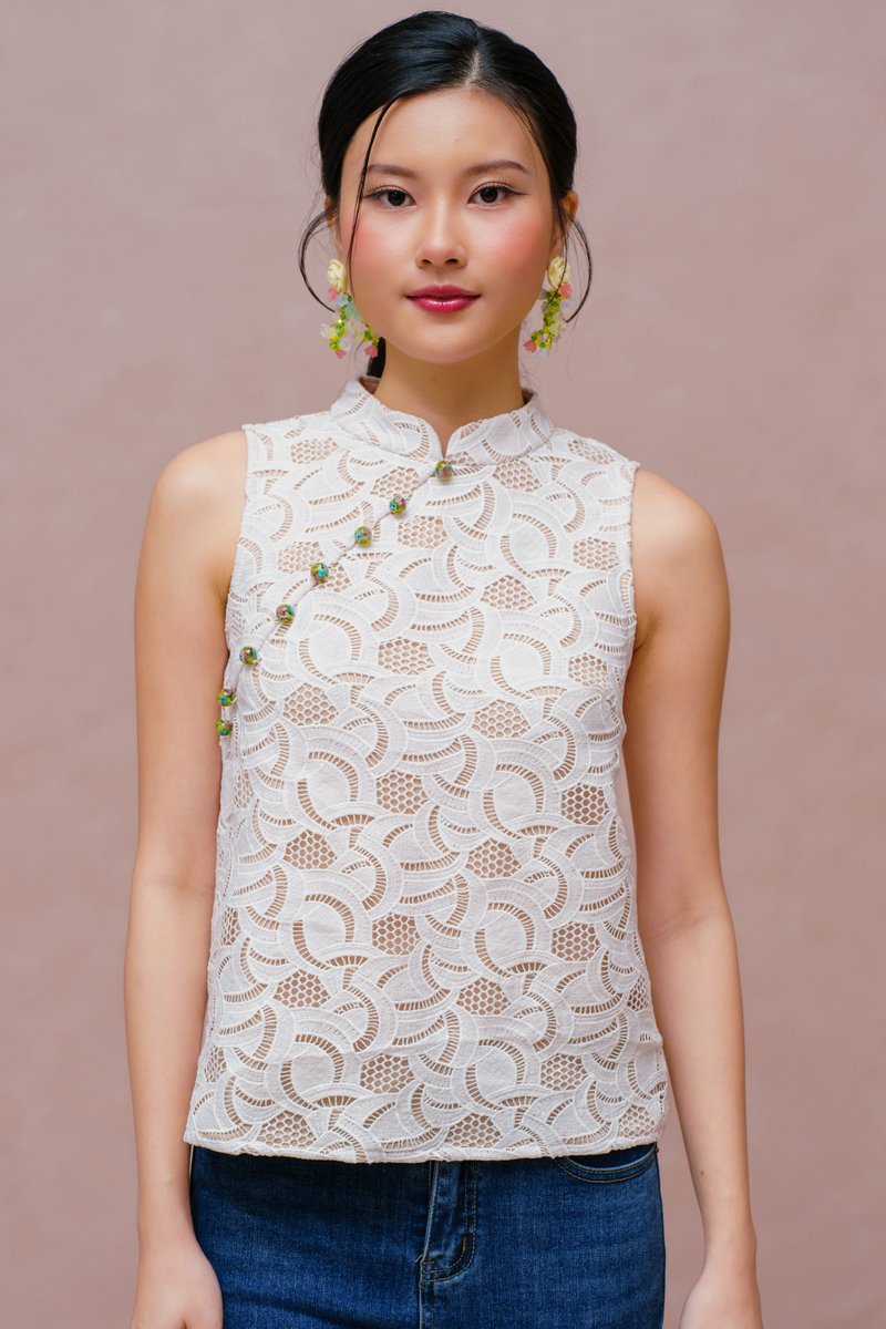 WEDNESDAY CROCHET CHEONGSAM TOP (WHITE)