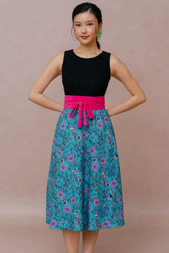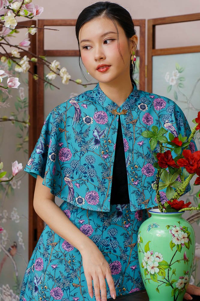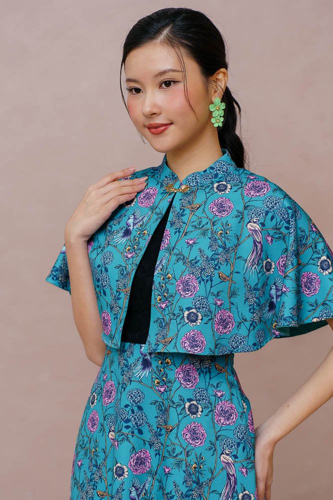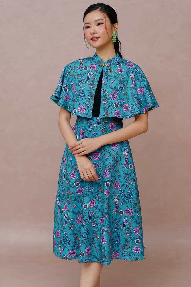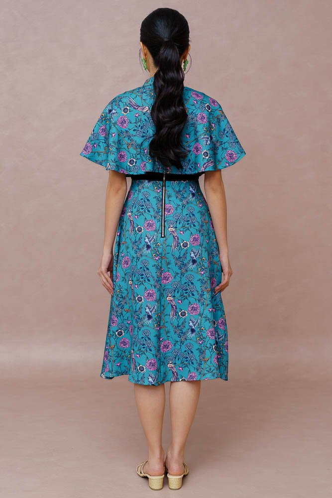 WILLOW SPRING LACE FLARE DRESS WITH CAPE (SEA GLASS)